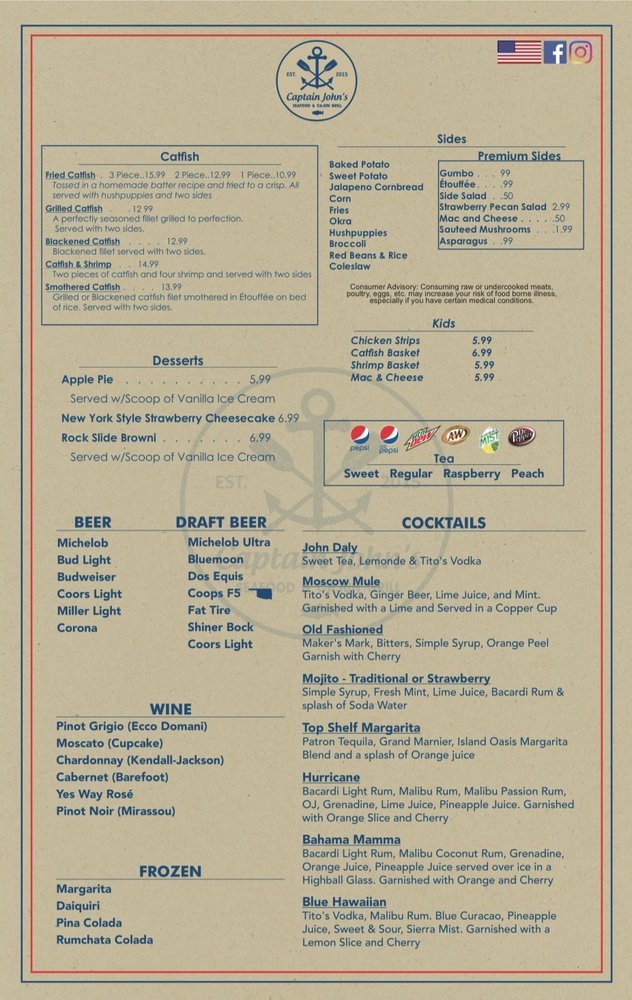 For reservations or inquiries, feel free to call (918) 380-1034 and take the first step toward a culinary adventure at Captain John's!